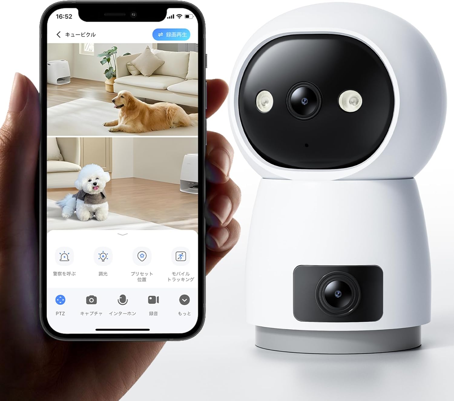 ペットカメラ 見守りカメラ【次世代デザイン・デュアルレンズ】