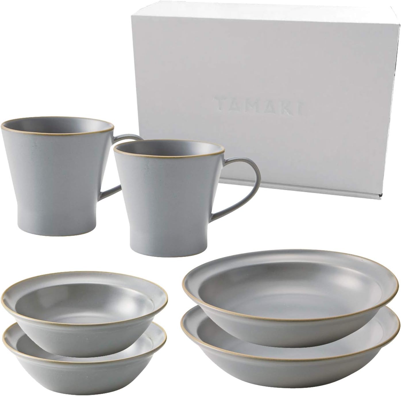TAMAKI ペア食器セット エッジライン グレー 6点セット