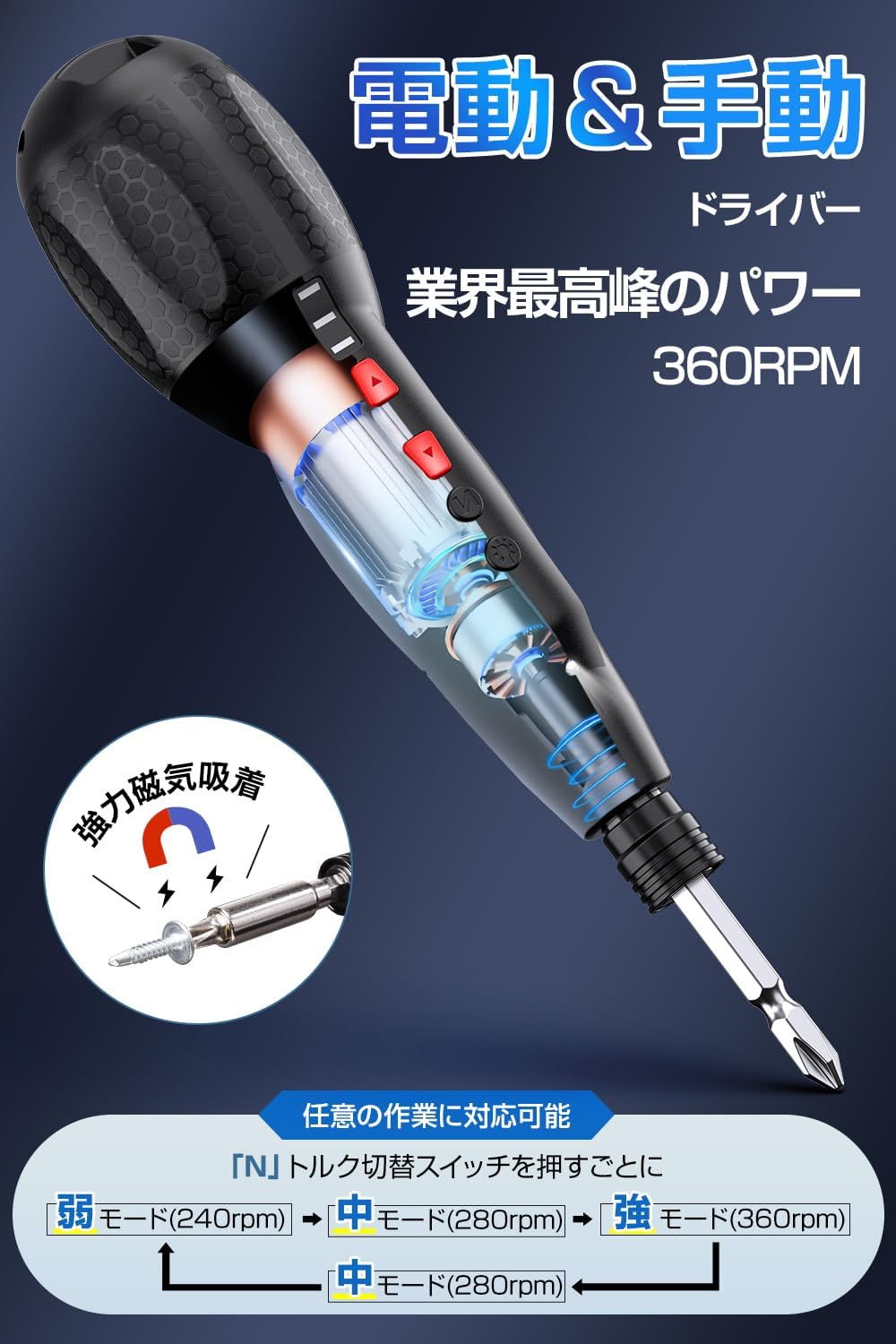 電動ドライバー 小型 Type-C充電式