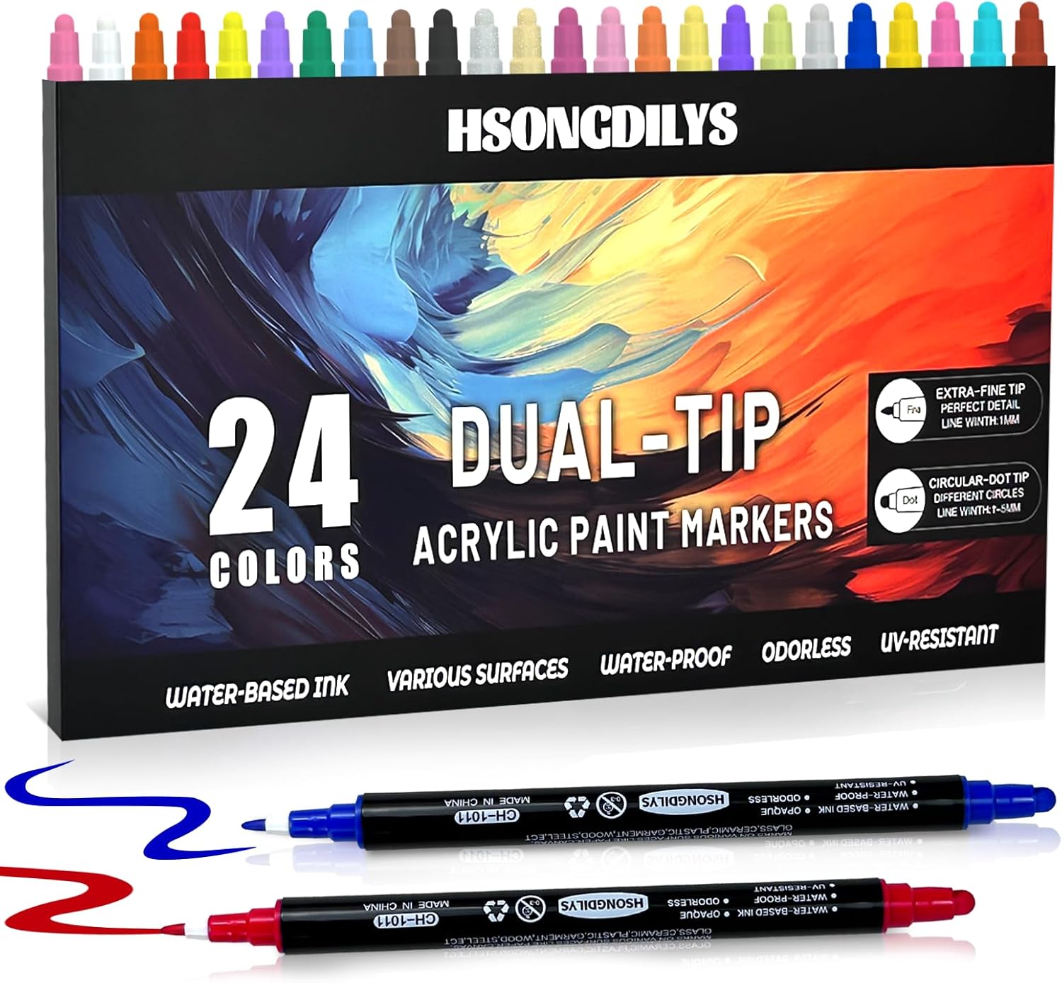 HSONGDILYS 24色デュアルチップアクリルペイントペンセット