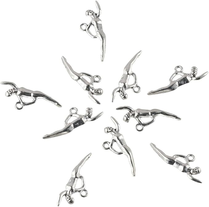 hobbyhub 100個 アンティークシルバーメタルスイマーチャーム