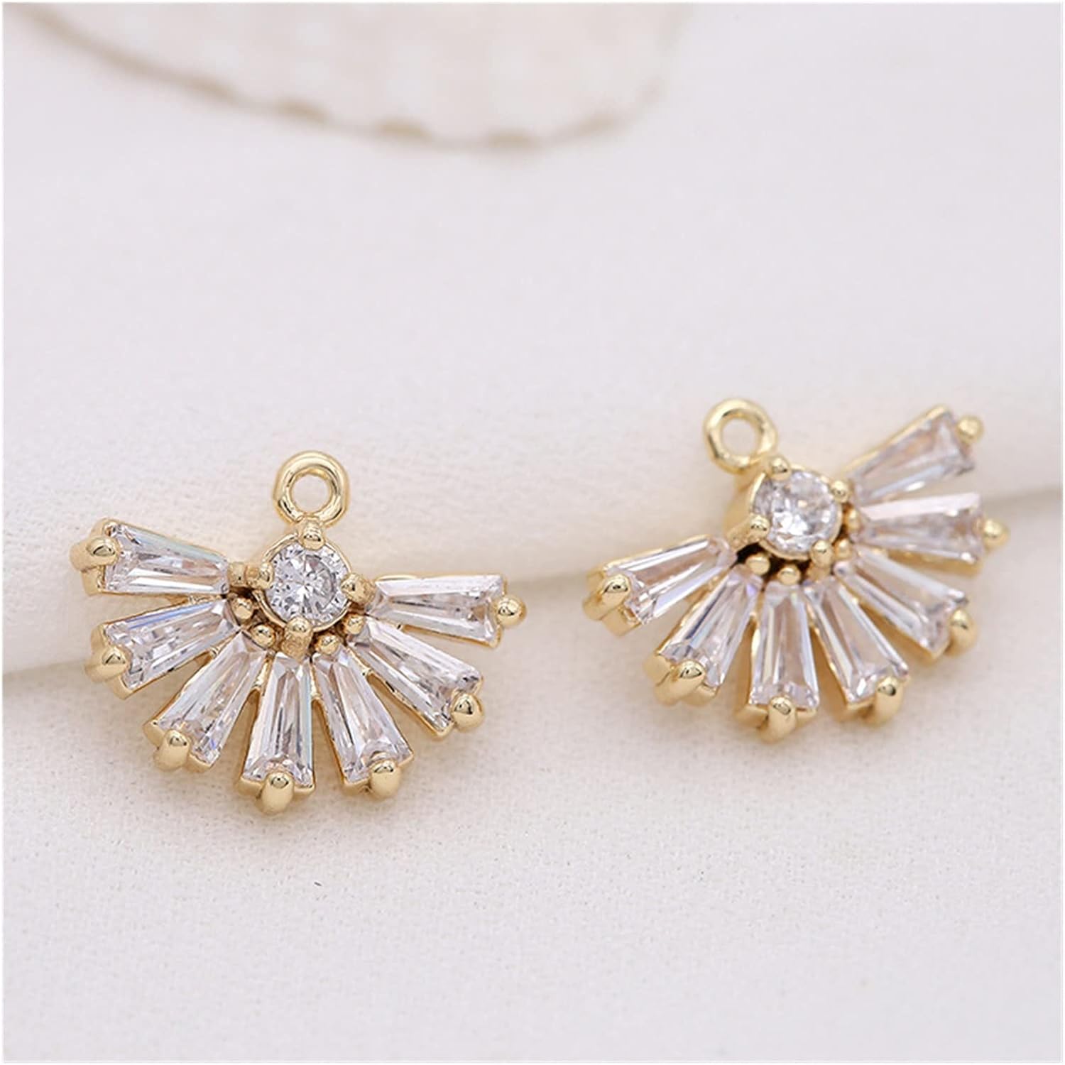 18k ゴールドカラープレート真鍮とジルコン扇形